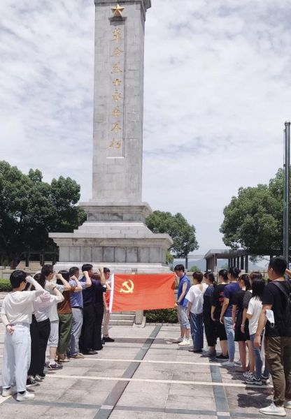 亞慱體育登錄平臺國貿本部第二黨支部聯合廣東支部以“錘煉黨性踐初心、獻禮建黨99周年”為主題,赴杭州市臨安區烈士紀念館和臨安新四軍曆史紀念館參觀學習,向烈士紀念碑敬獻花籃,聆聽新四軍浴血奮戰的事迹,重溫入黨誓詞,高唱紅歌。